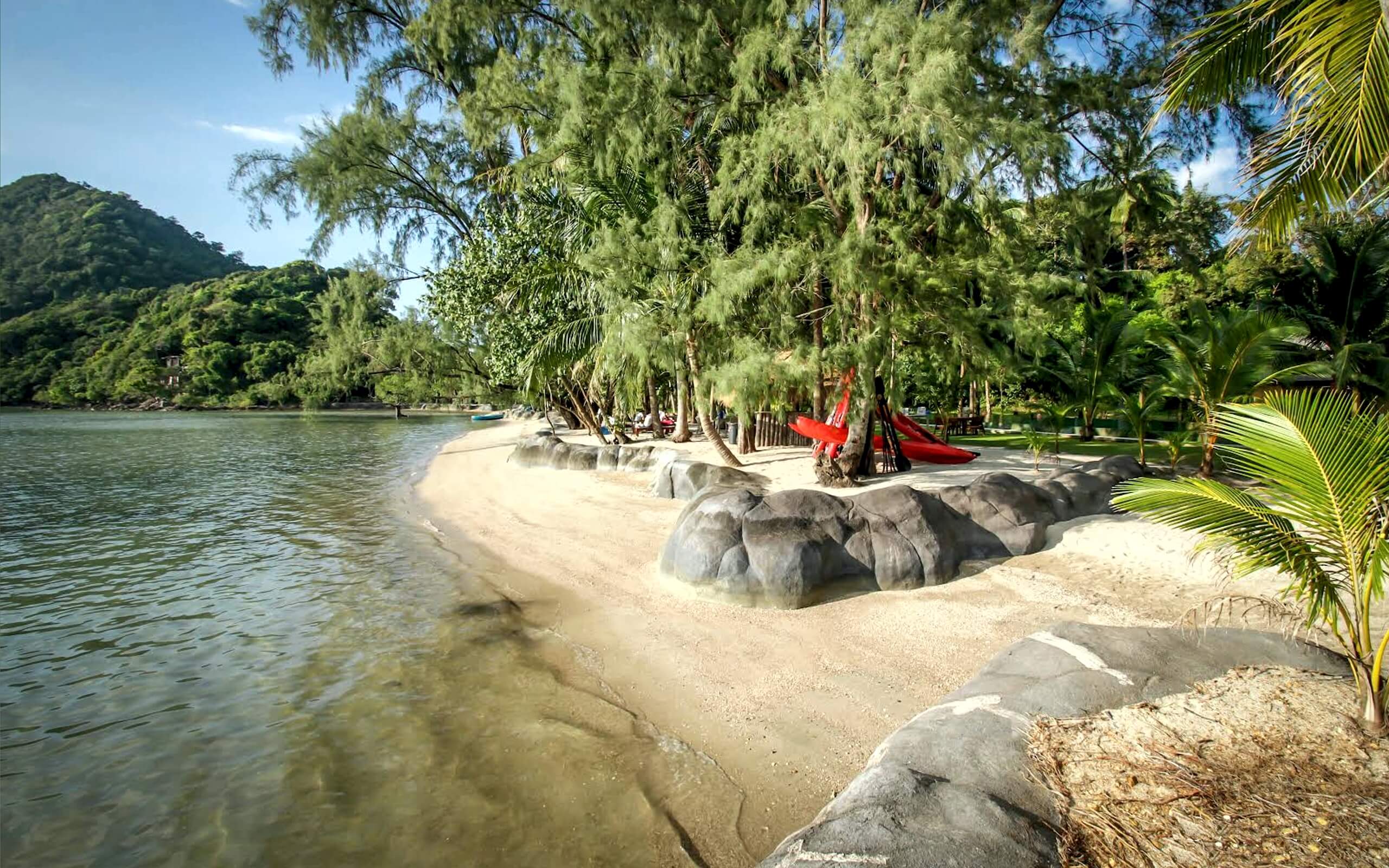 Vom Flughafen Bangkok Suvarnabhumi (BKK) ist es eine 4-stündige Fahrt mit dem Auto oder Bus zum Fährhafen auf dem Festland. Die Fähre bietet sowohl Platz für Autos als auch für Passagiere und dauert ca. 20 Minuten für die Überfahrt. Auf der Insel angekommen, sind es von der Fähre aus 10 Minuten Fahrt zur Blue Haven Bay.